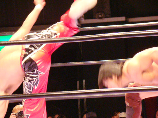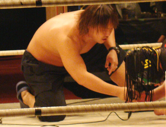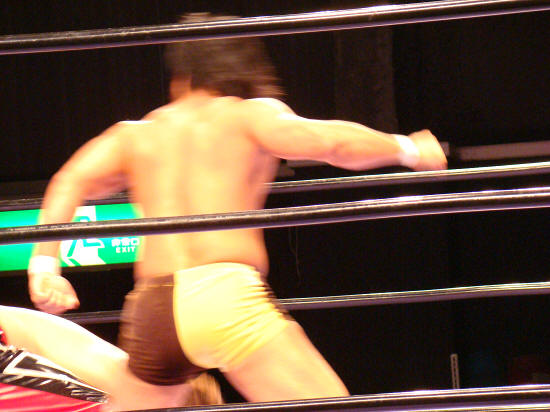 正義の味方・佐野のマイクの最中、リング下に避難していたタイガーが、