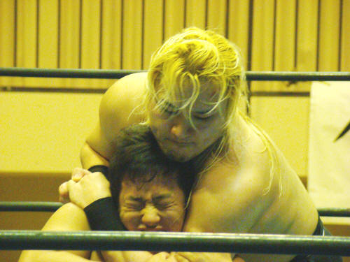 TAKA対円華からTAKA対筑前へ。TAKAぶちかましで負けエルボー効かず。