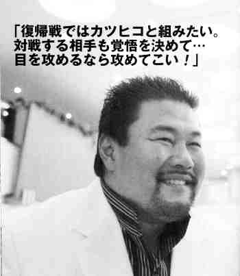 さて、その健介だが復帰戦のカードは全日本に一任する姿勢。ただし、ひとつだけ希望をあげるとすると中嶋勝彦とのタッグで再スタートを切りたいという。