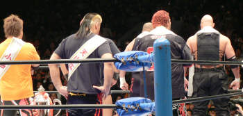 川田を除いた参加選手の揃い踏み。ずっと他団体見てきたせいか、全日上がる選手はみんなデカくて迫力…。天山は観客から大声援を受け歓迎ムード(へぇ~何か意外)