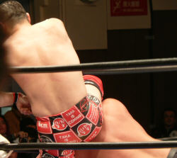 事前カード発表時はコレがメインでしたが、変更に。武藤を休憩前に見るのは初めてかも…ちょっと不思議な気分。で、武藤と近藤からスタート。重量級の武藤投げちまう近ちゃんはアレね、もう既にジュニアの範疇じゃないわね。