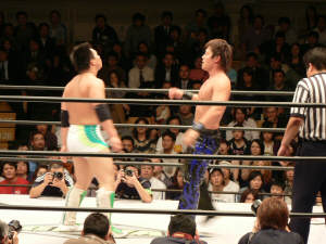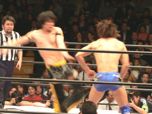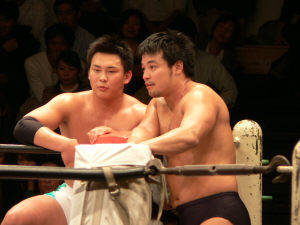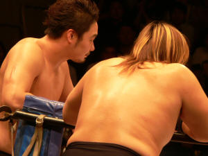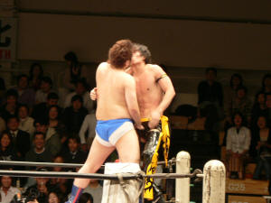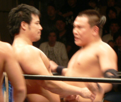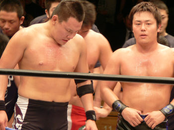 似たような師匠を持つ二人。何か心通じるものがあるんでしょうか。仲良し兄弟って感じです。しかし潮崎、余裕ぶっこいてるけど(言葉悪)大丈夫なんかい?