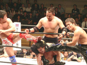 ○高山善廣(高山堂)鈴木みのる(パンクラス・ミッション)NOSAWA論外(フリー) vs 森嶋猛(ノア)佐藤耕平(ZERO1-MAX)●谷口周平(ノア)