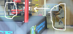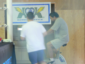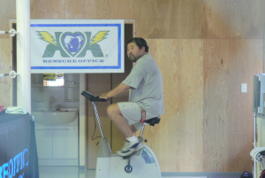 マサさんはエアロバイクに