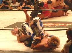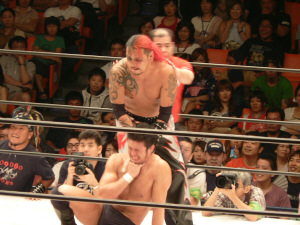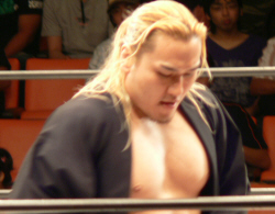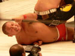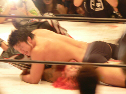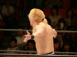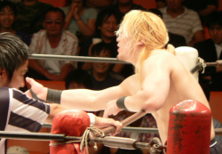 澤に握手を求めると見せかけてスタスタ。それにしても、KAIENTAI DOJOの選手は様々なカラーで面白い。基礎はキッチリあとは放任、というTAKA代表は偉いと思う。
