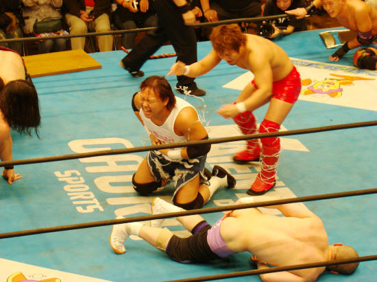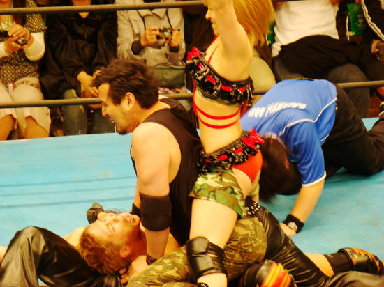 トウナイ入場→安沢入場で安沢が鎖に足を取られ転倒したところを丸め込み。