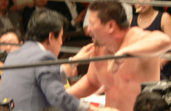 (柴田はこの時点まだリング中央で大の字)