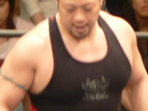 ブルート対嵐、ブルート対吉江、重量級どうしはぶつかり合うだけで迫力!シンプルだけど、こういうの生観戦の醍醐味だわ~。最後はブルートが裏切り、デブ3人で雷陣にケツ攻撃。雷陣ペチャンコ…。