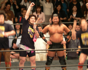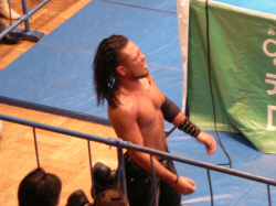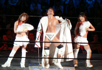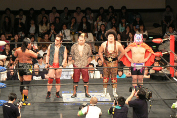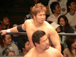 諸橋正美君いよいよ正式デビュー。感慨深いですねぇ…。思えば昨年の事、負けてばかりの不甲斐無いお兄ちゃんを応援すべく、高校卒業を控えた身(この辺がミソ)で後楽園ホールに駆けつけた正美君。弟の声援空しく敗れたお兄ちゃん。その後乱入した東郷&守部組にリングに引っ張り上げられた制服姿の正美君。弟を守ろうと必死なお兄ちゃん簡単にボコられる。守部のブレンバスター(だったかな?)で失神して担架で運ばれる正美君…嗚呼。結局、その時のダメージが元で卒業式に出られなかった正美君。その代わりにDDTのリングで疑似卒業式を感動的にやって貰えたんですが(先生や友人まで呼んで…)そんなとこまでガチでストーリーに組み込んでしまうDDT恐るべし…。