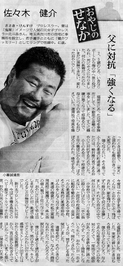 新日本プロレスにいた94年9月、今は亡き橋本真也とのヘビー級タイトルマッチの前夜、おやじが死んだと警察から電話がありました。自殺でした。実家についたときはもう骨になっていました。