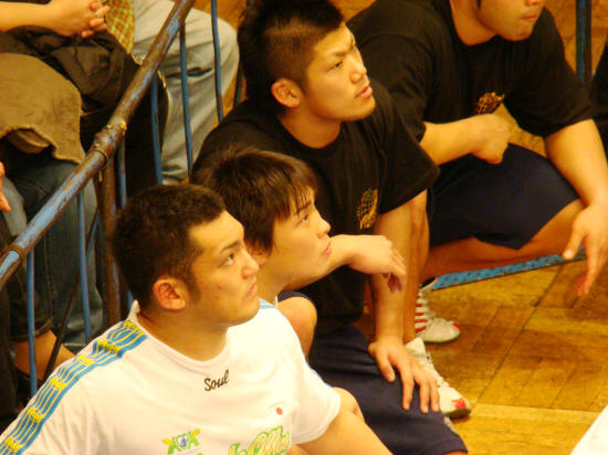 試合を見守る若手達(征矢の顔切れたスマン)