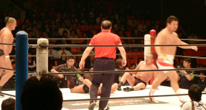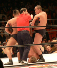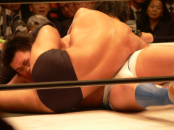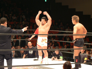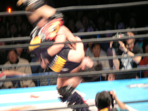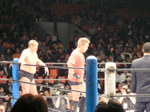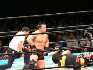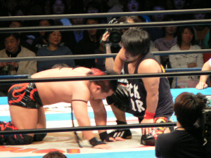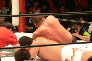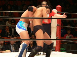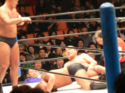 そうそう、痛い客が近くに居ましてね。近藤の大ファンのようで、もう初っ端から「コンドーサーン!コンドーサーン!」始まって1分も経たない内に「よし!近藤さん!フォールだ!!」一斉に周りの客から「まだはええよ!」突っ込まれてました。「近藤さんはいい人なんだぞ!」「誰もそんなこと聞いてねえよ」それでもめげずに「コンドーサーン!」でもTARUや諏訪魔は大嫌いみたいで野次り放題。うるさいけど自分の周り、その人のお陰で異様に盛り上がってました。ライブ観戦って…ライブ観戦って…本当に面白いですね!