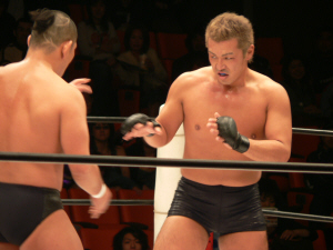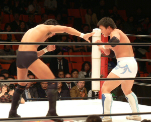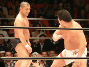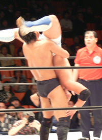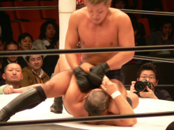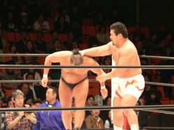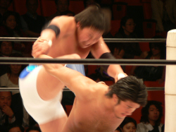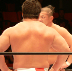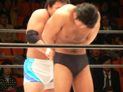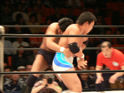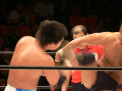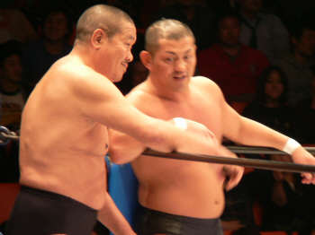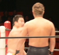 という訳で、この二人がメインでした。凄いなぁ勝彦、健介父さん押しのけてメインだよ!しかし、どんな闘いでも相手でも萎縮しないのが勝彦の良いところ。真っ直ぐにガンガンぶつかって行く様は、まるで爽やかな涼風のようだ(高山の言を受け思いっ切り褒める)