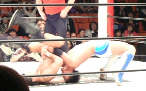 全日に「前座」は無い。あるのは「休憩前のおいしい試合(by菊タロー)」ですよ(休憩なかったけど)という訳で、楽しいダークマッチではじまりはじまり。菊ちゃんの無駄に美しいムーンサルト(でも自爆)渕さんのへっぽこジャイアントスイング(荒谷の頭髪がヤバイ)やっぱここから見ないとね。