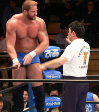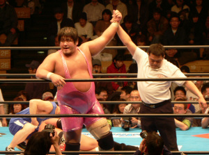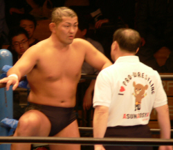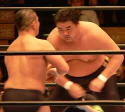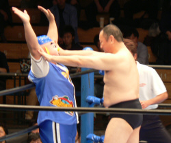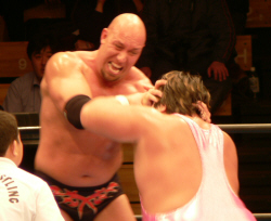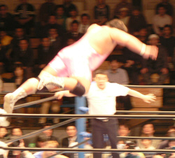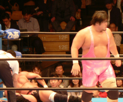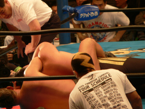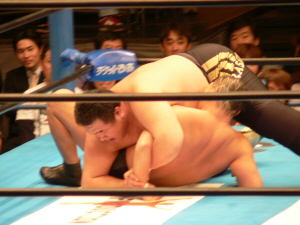吉江のヒップアタック!全日のお客さんはジャマール見てるから、ケツ攻撃にはちょっとウルサイですよ。