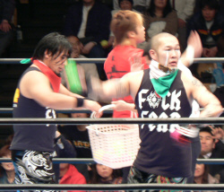 嵐の入場を待つ間、京平さんとゴチャゴチャ絡むみのる。