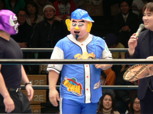 お値段、なんと61,000円!(阿部氏が抑えなかったらもっと上がっただろう)希望者二人をリングに上げ、コール付き、和田レフェリー付きでジャンケン。観客もノリノリで盛り上がる。こういうの、感謝デーらしくて面白いなぁ。