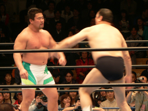 健介が珍しく丸め込みも。逆水平から押さえ込んで勝利。