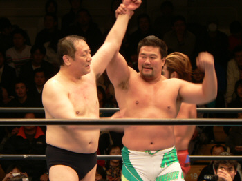 試合速報タイム、26分20秒。いやいや、今日の渕さんの稼働率は凄かった。健介に滅茶苦茶投げられるは、カズをボディスラムで投げまくるは。間違いなくMVPっすよ。