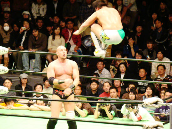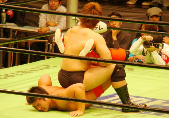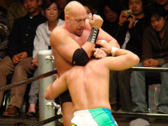 ラリアット→フォール、ラリアット→フォールを二度繰り返す微妙な出だしの健介。