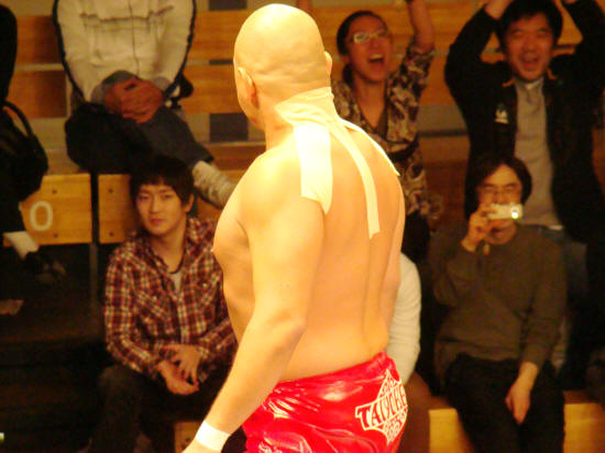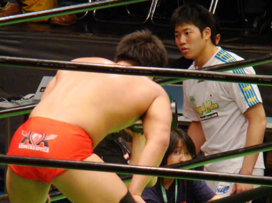 ジョー樋口氏による開会宣言が終わり、選手退場。…ん?健介何してるの?