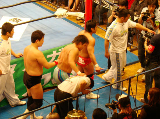 健介と勝彦が最初に入場。タスキ姿を全日でなくNOAHで見るのは何か不思議。