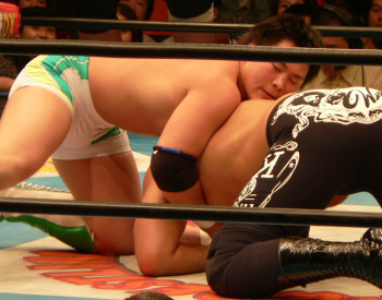 社長さっさと帰るし、健介はぺちゃんこになった勝彦の介抱で忙しいし。試合後の吉江、一人ポツン状態で戸惑い気味が少々お気の毒。でもパワーあり、安心できるキャラで良かったですよ~。これからもどんどん参戦して欲しい。