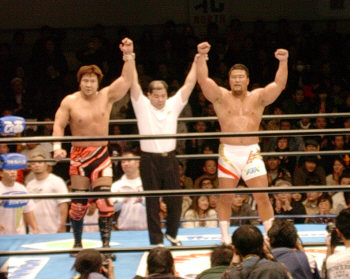 諏訪間&ブルートのタッグ ブルート初ピン勝利おめでとう!