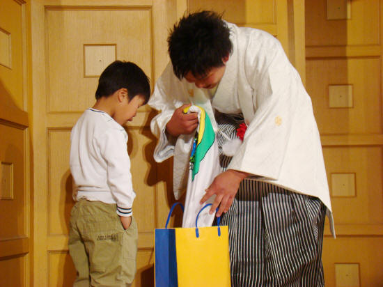 受付を済ますと、健介ファミリーがお出迎え。うおっ!健介がタキシード着てる!