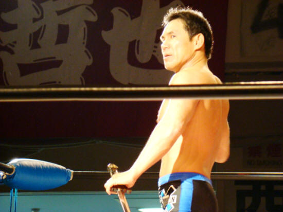 試合では一瞬で消えた蝶野三四郎が、ハイテンションで営業していたのでした・・・。
