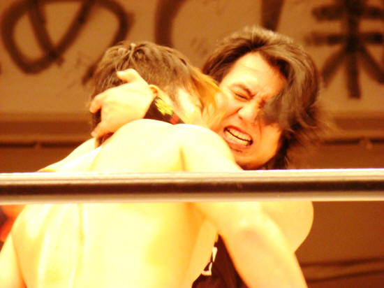 試合終了後、リングの上と下で視線を絡ます丸藤とカズにドキドキしました。