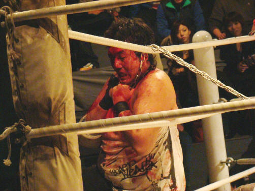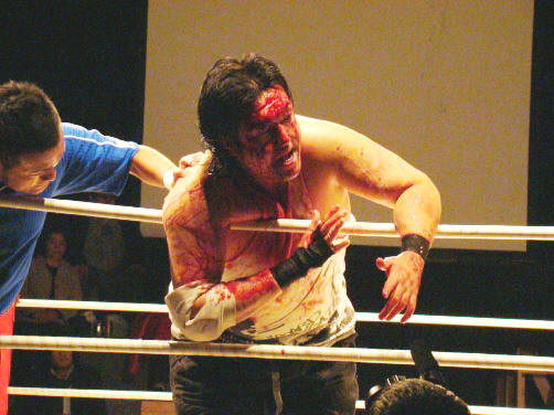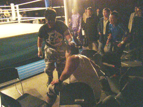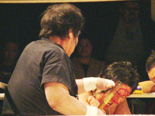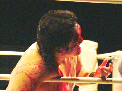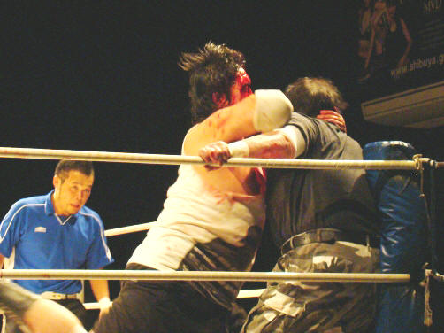 因みに、この試合の後休憩でした(空気入れ替えとマットの血拭き作業のためか?)