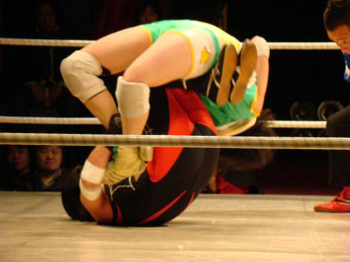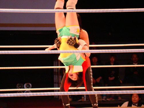 最後はランジェリーが真琴をフォール。
