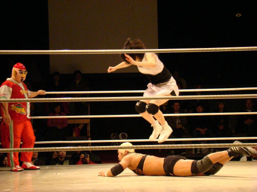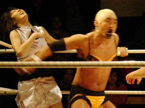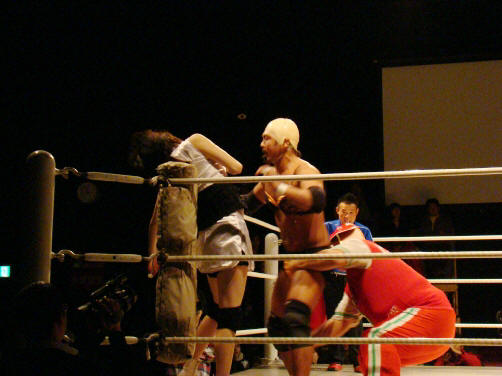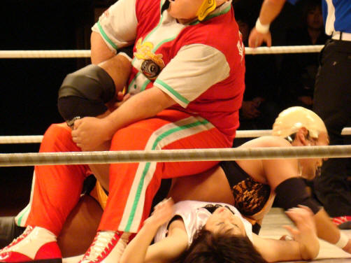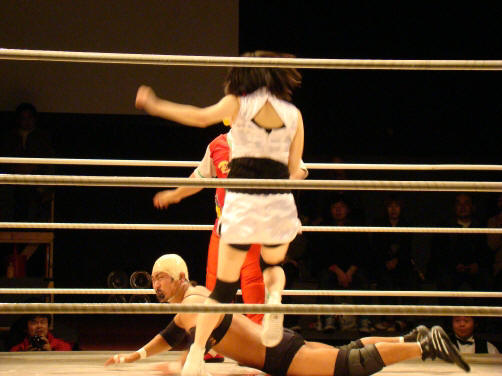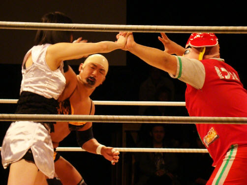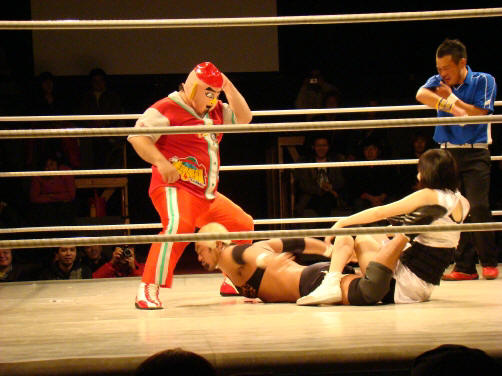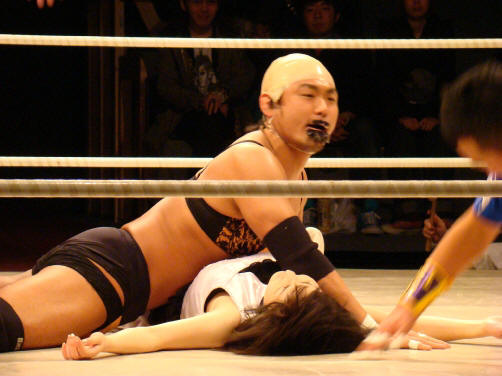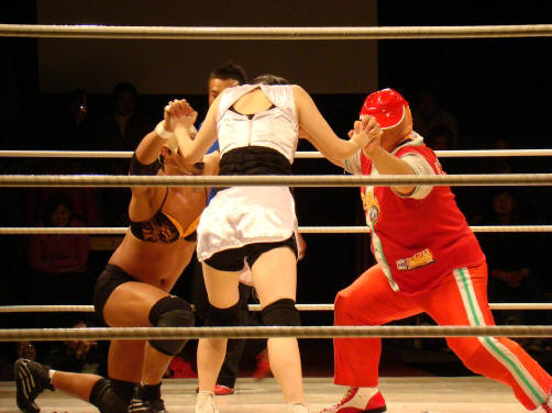 ランジェリー武藤(珍日本プロレス) vs 菊タロー(フリー) vs 真琴(アイスリボン)