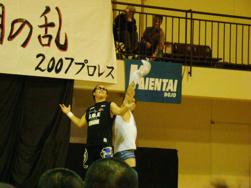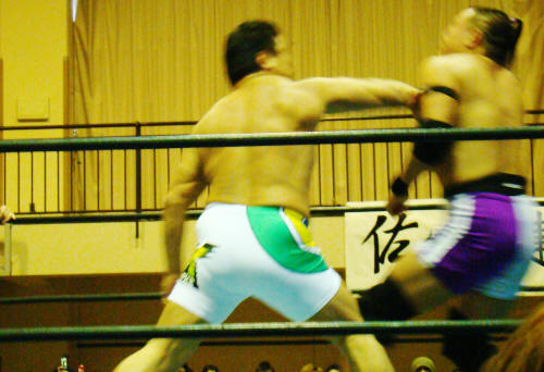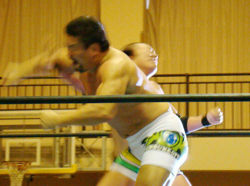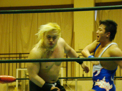 TAKA対円華からTAKA対筑前へ。TAKAぶちかましで負けエルボー効かず。