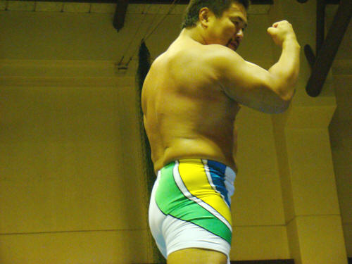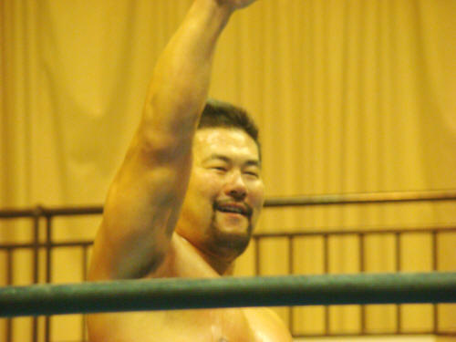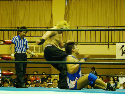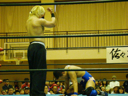 そして健介対KAZMA。大喜びの観客。「ん?」気をよくする健介。