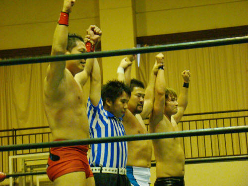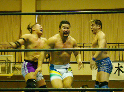 vs 筑前りょう太、円華、○佐々木健介(健介オフィス)