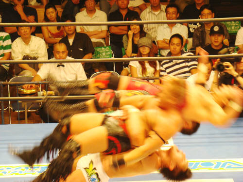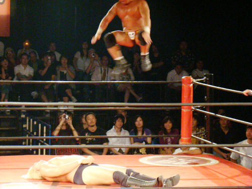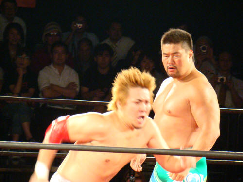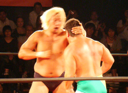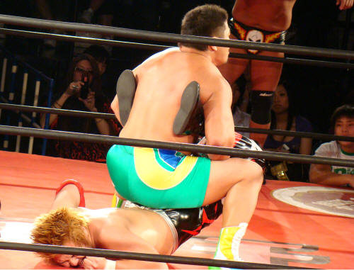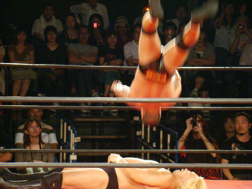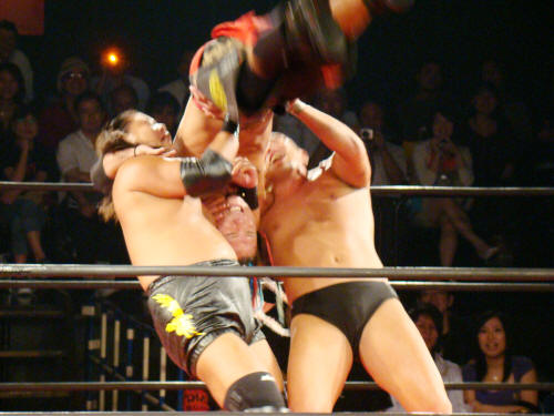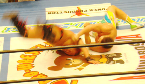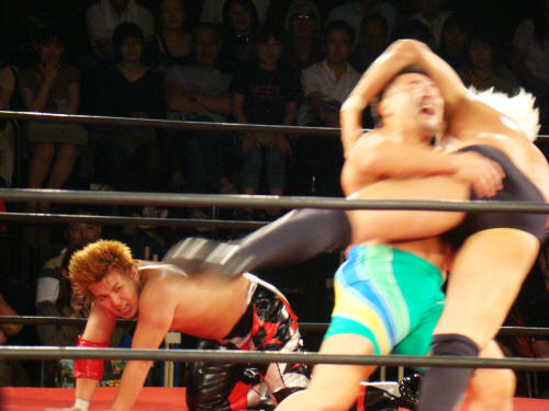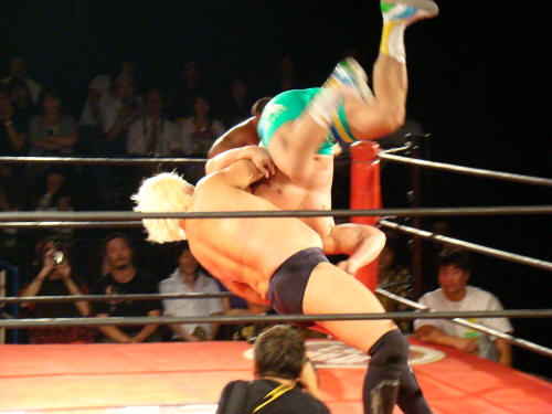 健介が「ほいさっ」高山を投げたところを待ち構えていたディックさんがボンとな。