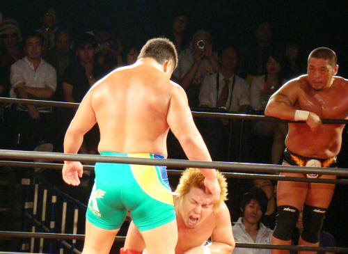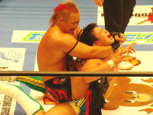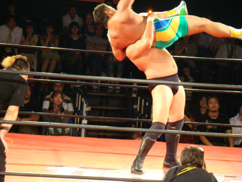 ようやく関本にタッチ。みのるを軽々とかつぐ関本…清々しいバカヂカラですなぁ。