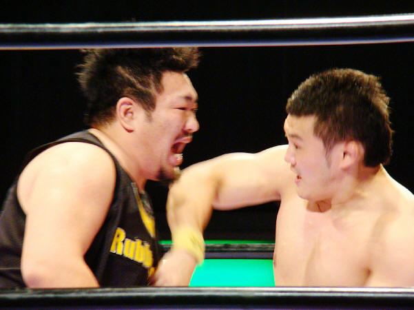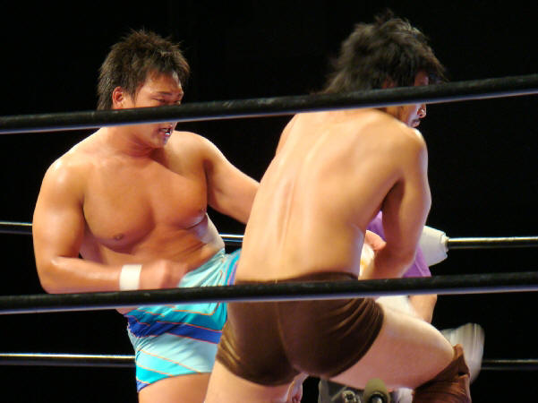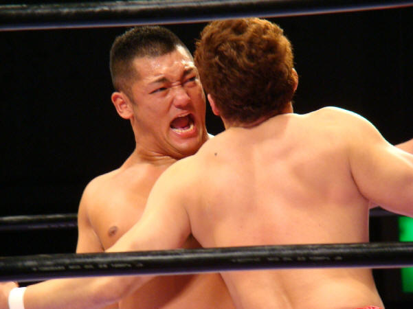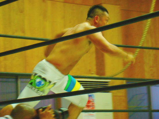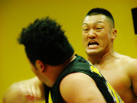 高志は気合い充分。スピアーで重量級の福田を吹っ飛ばすパワーに「おおっ!」