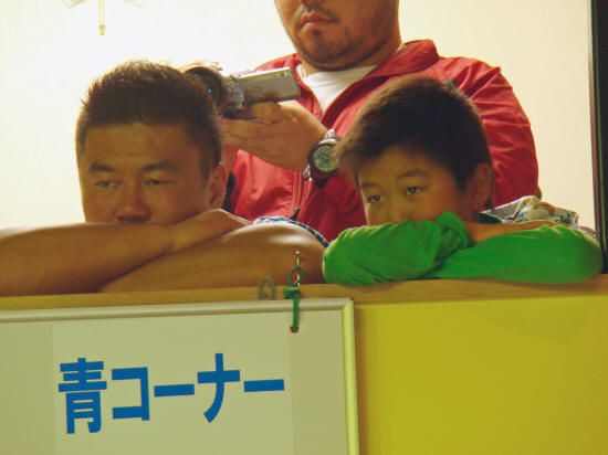 練習生の鈴木君(左)白石君(右)慣れたのかセコンドでしっかり声を出していました。