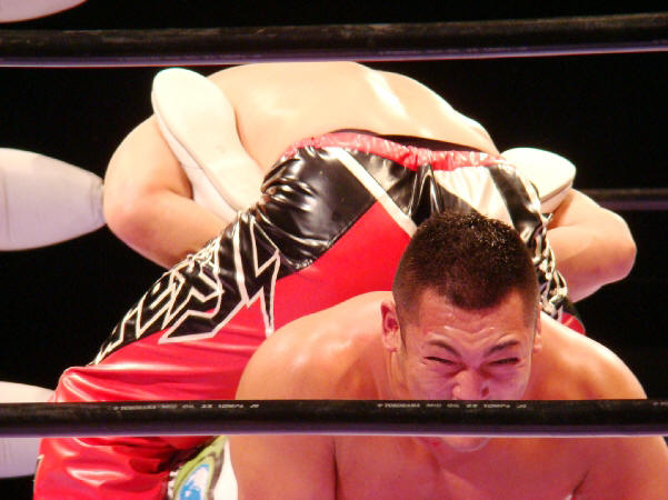 開始5分まで蹴りはこの一つだけ。試合通して蹴りを多用しない処が良かった。