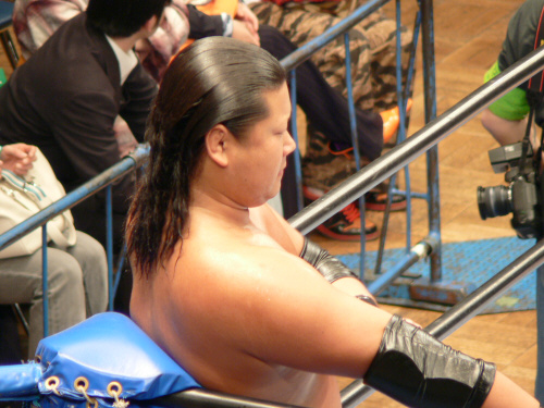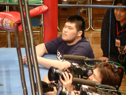 いつもの後楽園ホール。それでいて浮き立つような雰囲気を感じるのは、チャンピオンカーニバルへの期待からでしょうか。先ずは健介オフィスの売店チェック(毎回ひやかしのみで申し訳ないです)練習生の山口クンはすっかり馴染んだ様子で、明るく元気に売り子さんしてました。上腕の太さに目を丸くしつつ「腕、凄いですね~」ちょっと触らせてもらっちゃいました(筋肉パンパン!)照れながら「いや~、佐々木さんにはまだまだです」…おおっ、ササキサンと比べるか、頼もしいねぇ。君は大物になるよ。