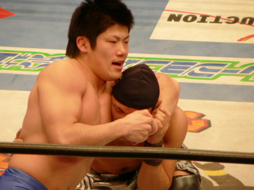 大鷲、諏訪魔をのどわ落とし。よく持ち上げた!
