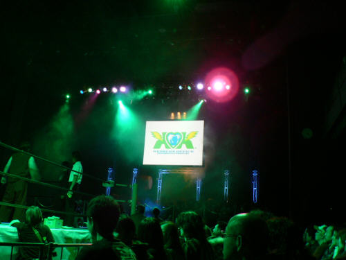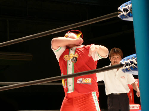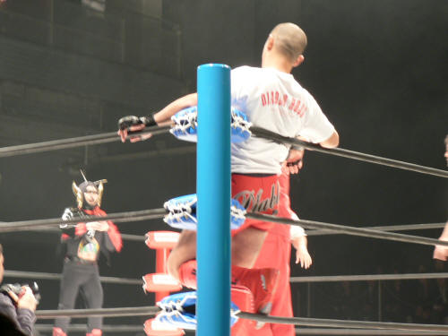 スト市、ニラ、菊ちゃんの順に入場。3人で固まってゴショゴショやってると村上登場。巨大フラッグも幟も無いけれど、相変わらず入場に時間を掛けます(村上のテーマはかっこよくて好きだから許す)そして抽選で村上の隣を勝ち取ったのはニラ。