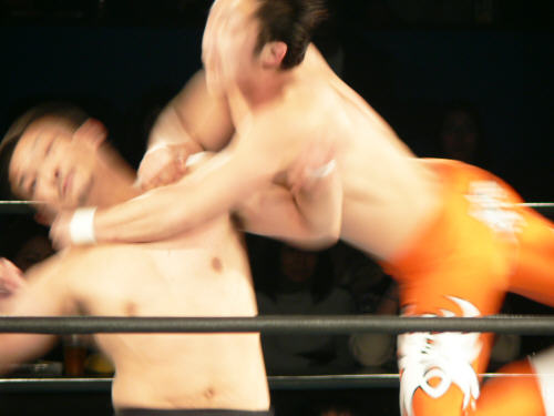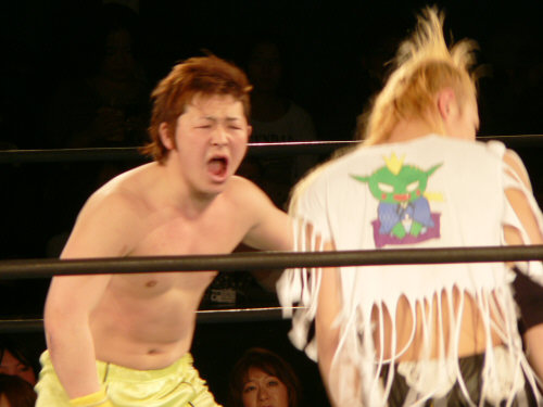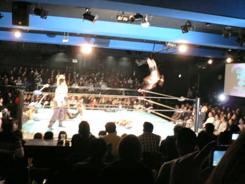 セミとメイン、ヒール側のセコンド乱入という同じパターンは飽きます。それに子供の頃、散々テレビで見た昔のプロレスパターンだし。懐かしさより「今更こんなの見せられても」と気持ち冷めまくり。KAIENTAI DOJOには、シンプルな攻防で魅せるプロレスを期待しているのに。普通に試合を見せて貰えないかなぁ。自分の頭が硬いのかなぁ・・・。