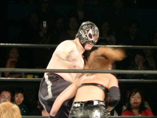 正直言ってメイン序盤で帰ろうかと思ったんですけど、「観戦レポ書かなくちゃ」なんて妙な義務感で最後まで見てしまいました。でも次からツマンナイ試合があれば、我慢しないで帰りますよ。好きなプロレス見に行ってストレス溜めたくないもん。