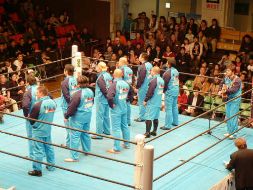 飛びや場外乱闘多数のためリングサイドにマット有。