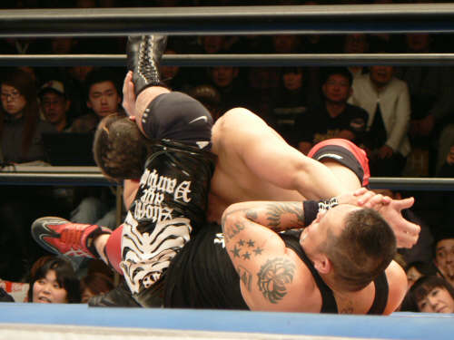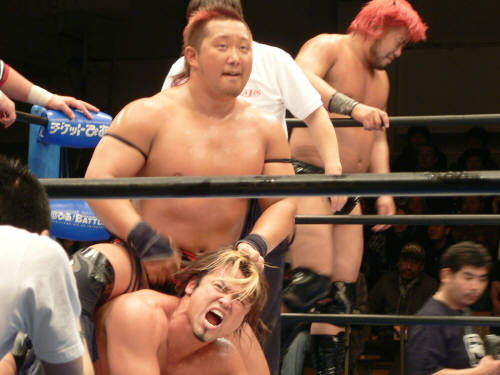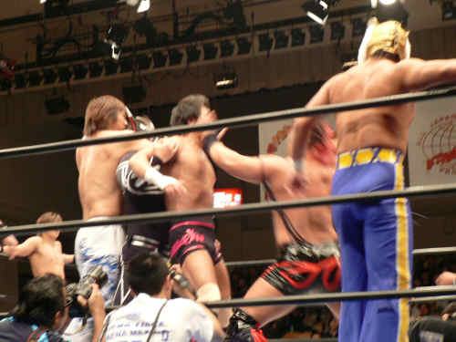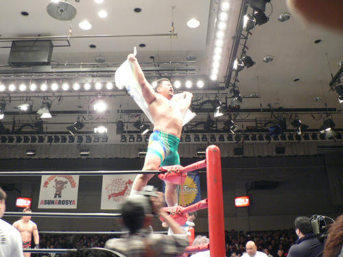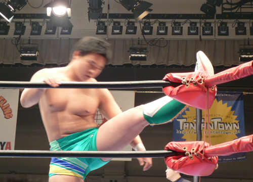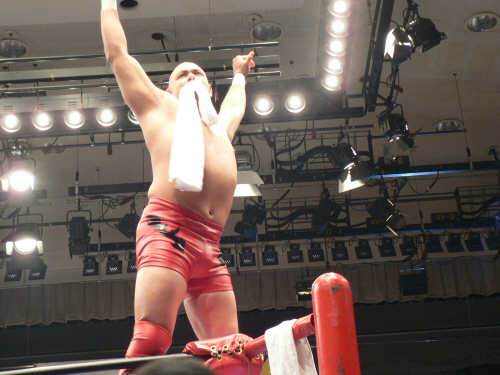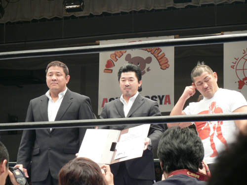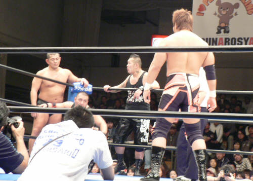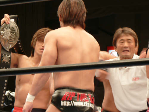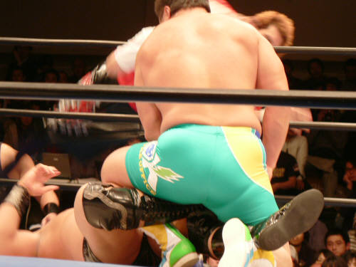 でもって、新日の誰かがコソっとタイツに賞金挟んで逃げ。