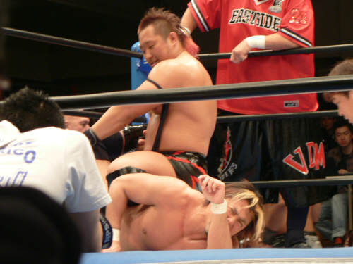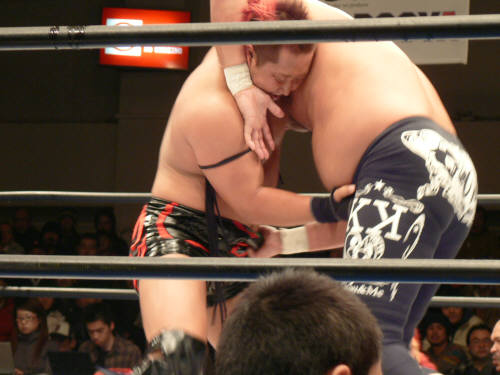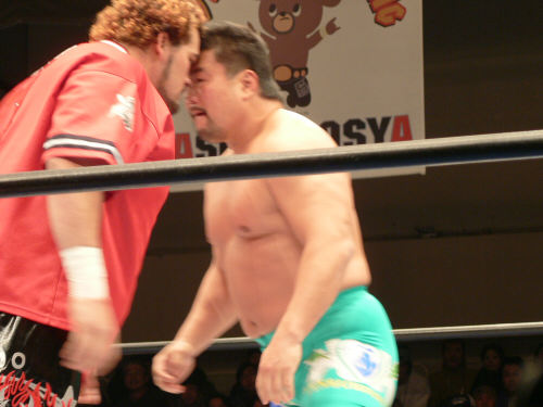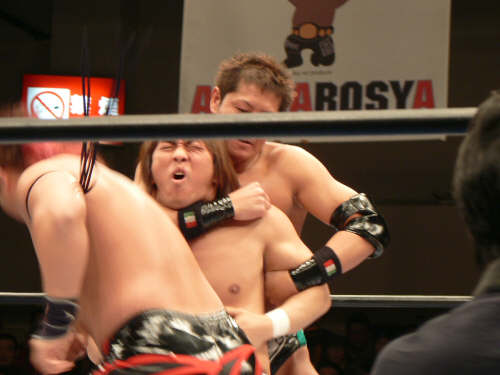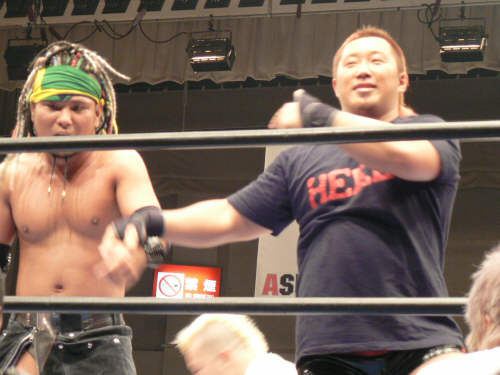 こういう展開はやるせなく残念。お客さん冷めまくりです!自分としては、実力を鑑みればここでキッチリと勝彦がYASSHIに負けた方が良かったと。そんな性急に勝彦の底上げしなくとも、自力で充分這い上がって行ける子ですからね。それとも近ちゃんがVMから抜ける予兆なんでしょうか・・・。いずれにしろ、後味悪すぎな試合でした。